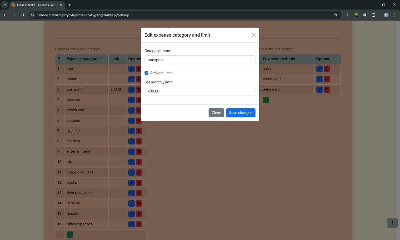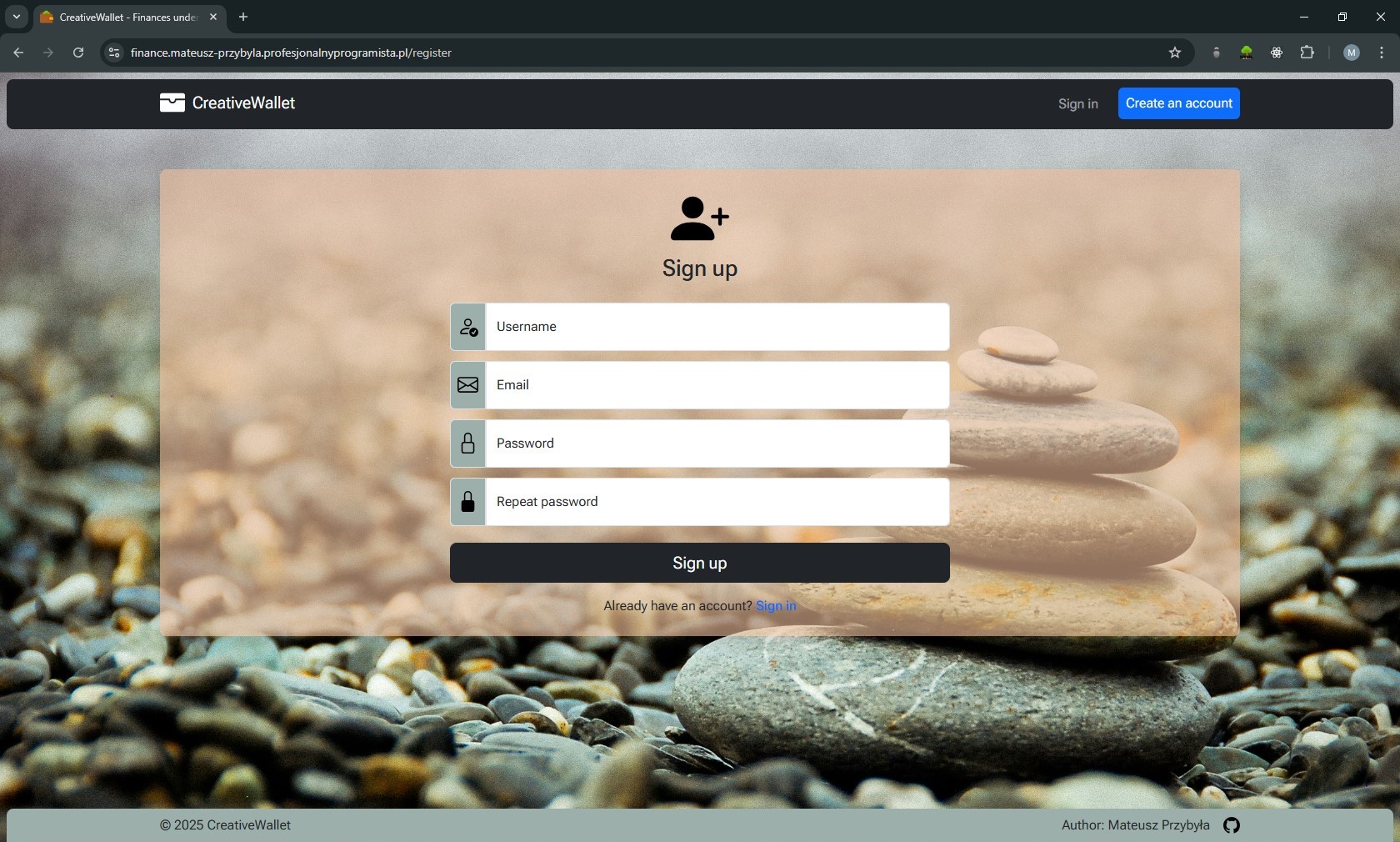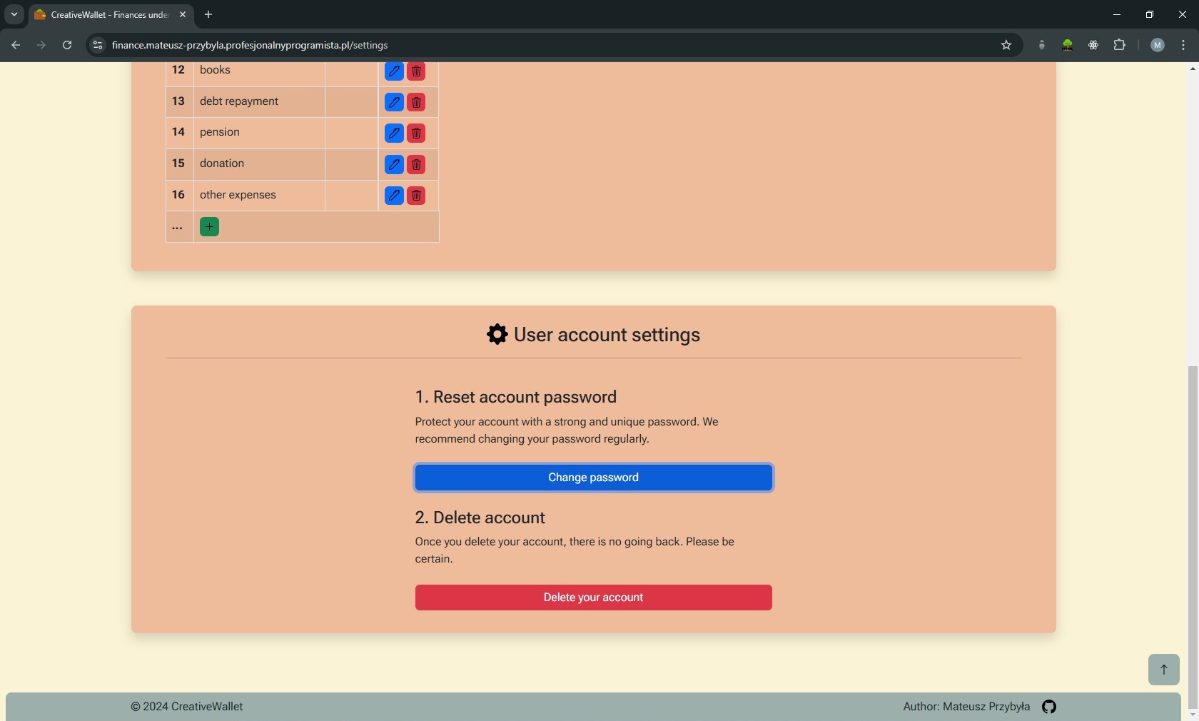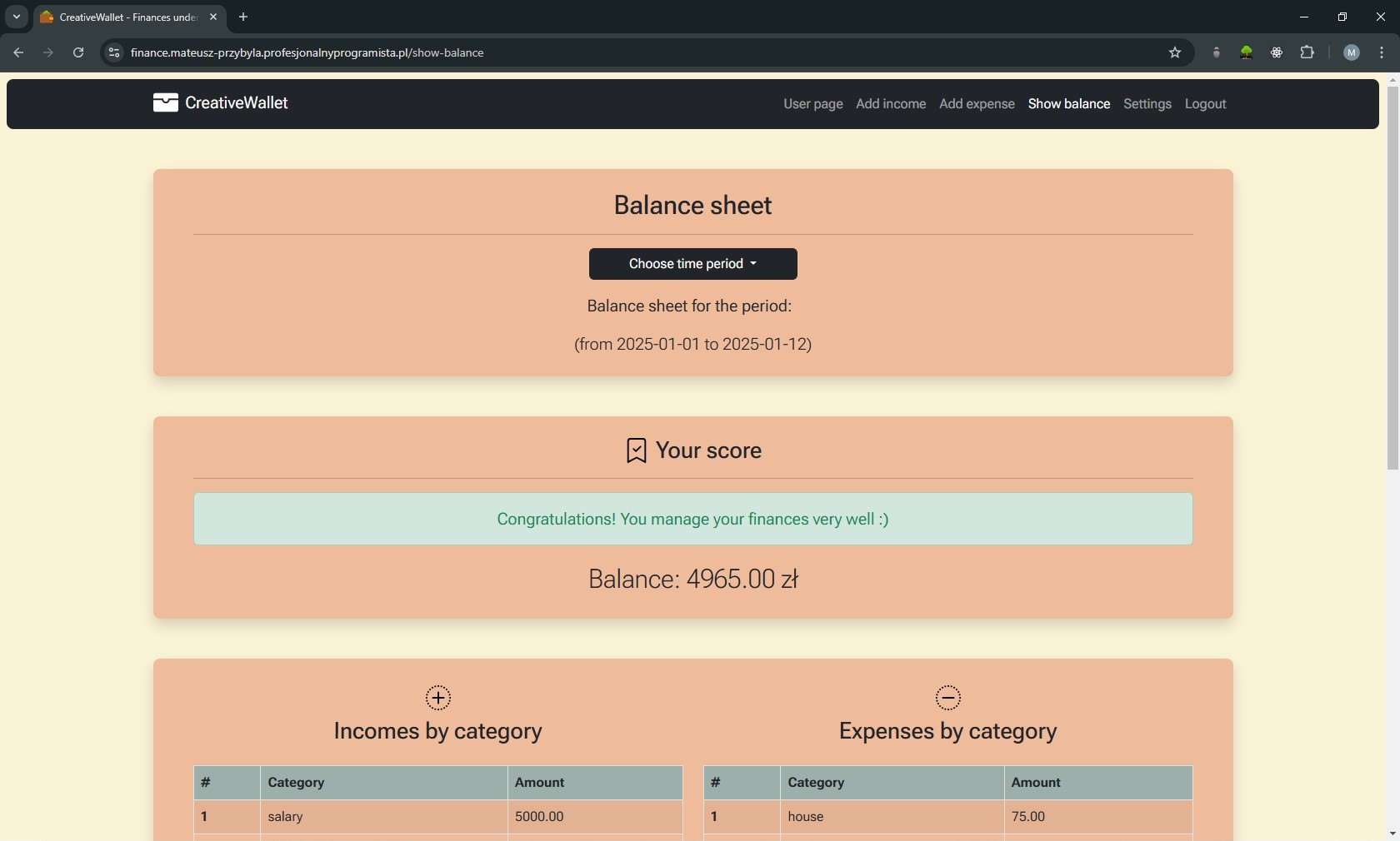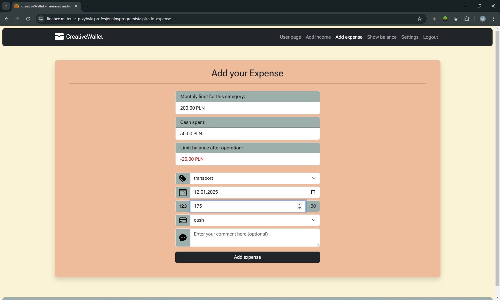 Creative Wallet to aplikacja webowa do zarządzania budżetem domowym, która powstała jako rozwinięcie mojej pierwszej aplikacji konsolowej w C++. Projekt był dla mnie przejściem od nauki podstaw programowania do budowy pełnoprawnej aplikacji webowej z własną architekturą MVC i logiką biznesową.